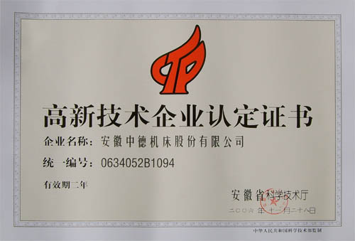 根據《國家高新技術產業開發區高新技術企業認定條件和辦法》、《國家高新技術產業開發區外高新技術企業認定條件和辦法》及我省實施細則規定的條件,我公司等39家單位經省科技廳或各市科技局、高新區組織的高新技術企業認定專家評審會通過,經公示無異議,省科技廳審批認定為“高新技術企業”(證書編號:0634052B1094)。同期,我公司研制開發的“WE67K電液同步數控折彎機”,被省科技廳審批認定為“高新技術產”(證書編號:3405004867),自批準之日起享受國家和省對高新技術企業(產品)給予的優惠政策。