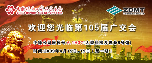 中德機床將參加第105屆春季廣交會,具體時間和地點是廣交會一期,4月15—4月19日,琶洲館大型設(shè)備及機械展區(qū)(6號館),展位號 6.1H37。歡迎各位新老客戶光臨。