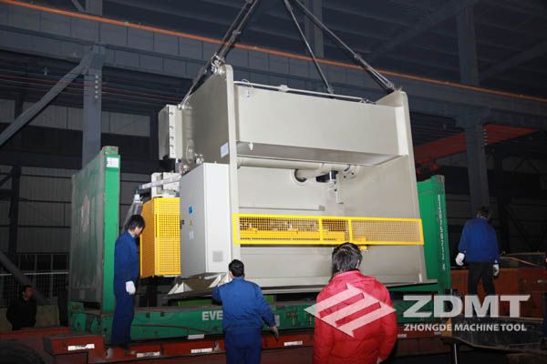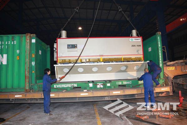 公稱壓力500噸的數(shù)控折彎機(jī)和剪切能力16毫米的數(shù)控閘式剪板機(jī)分別超過30噸和20噸,外形尺寸完全超過了普通集裝箱的尺寸。像這種類型的機(jī)器在國內(nèi)發(fā)貨很平常,但是對于出口來說情況卻完全不同。由于框架箱運(yùn)輸?shù)奶厥庑砸约昂_\(yùn)運(yùn)輸?shù)娘L(fēng)險性,對機(jī)器的包裝和捆扎是對工廠的新考驗。